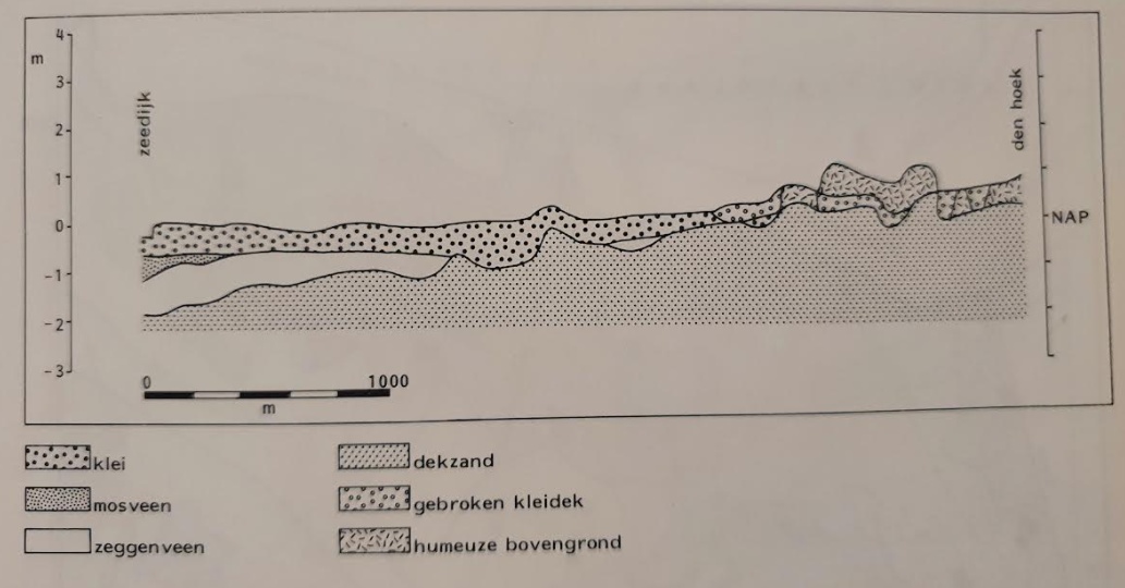 • Vanaf de romeinse tijd werd het veen langs de randen van het Almere verder afgebroken. Het veen in de polder werd ontgonnen, waarbij afwatering belangrijk was. Hierdoor klonk het veen in. Op het resterende veen werd in zoet tot brak water zware klei afgezet (de zogenaamde Duinkerken afzetting). Deze klei werd in ca 200 jaar tussen ca 1100 en 1300.